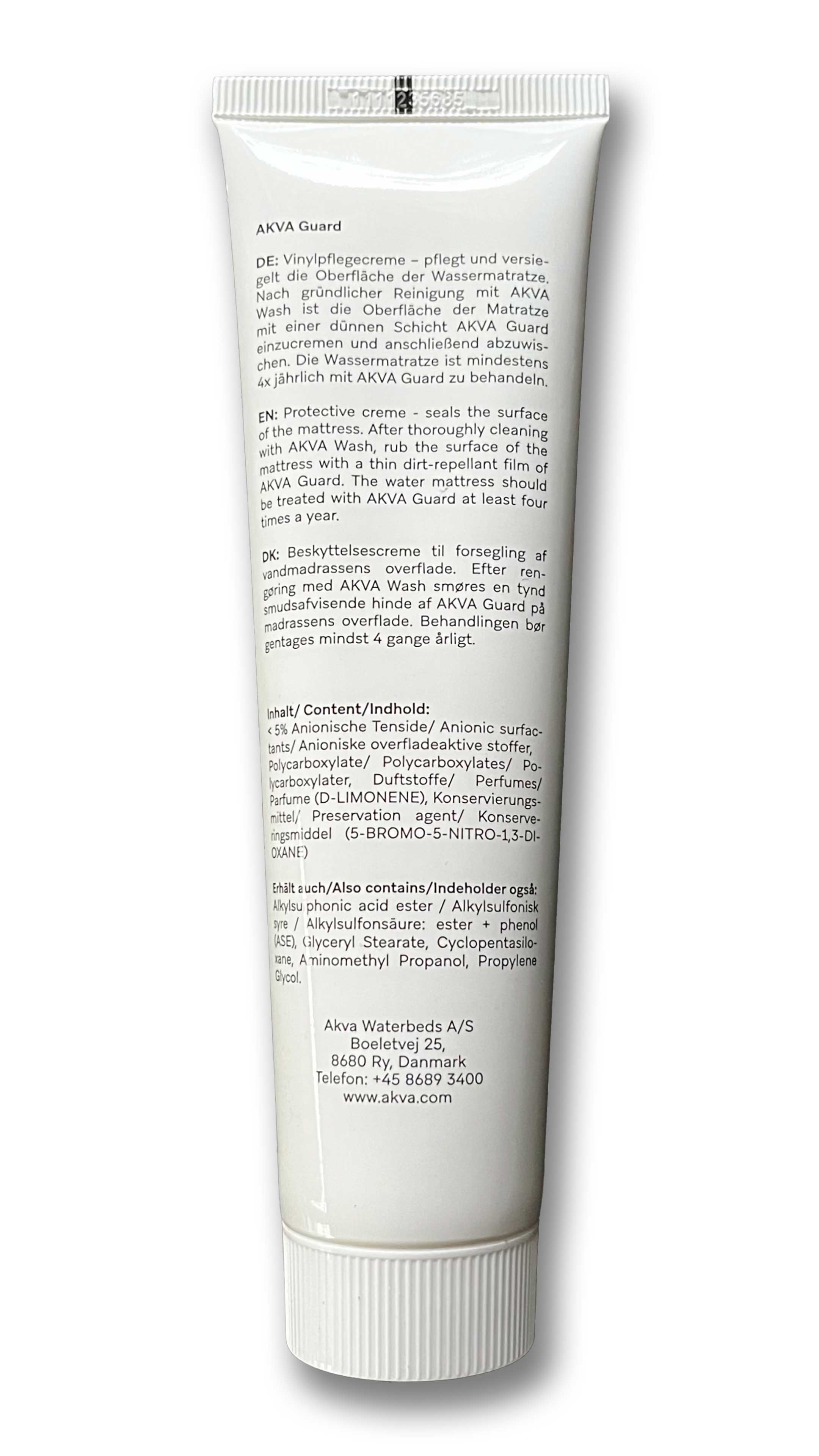 Akva Guard ist eine hochwertige Vinyl-Pflegecreme, die nach Reinigung der Wasserkerne und Sicherheitswanne aufgetragen wird, um eine Oberflächen-Versiegelung mit schmutzabweisender Wirkung zu erhalten und so die Pflege zu erleichtern.